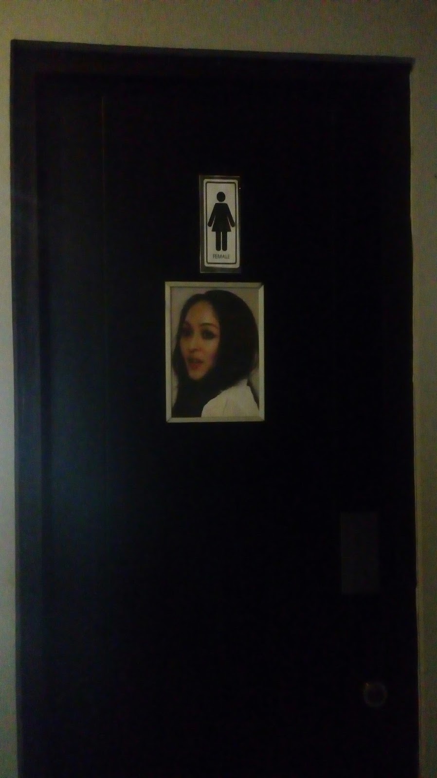 Foto Angelina Sondakh di pintu toilet perempuan dan Setya Novanto di pintu toilet laki-laki. Menarik. Nih kayak gini~